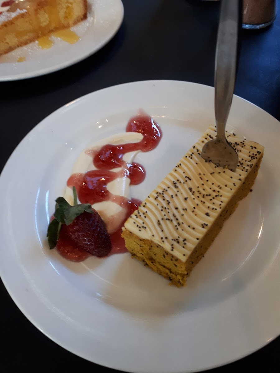 The food selection is modest but thoughtfully chosen. Expect treats like luscious slices of cheesecake, an iced coffee topped with vanilla ice cream that perfects an afternoon cool-down, and home-made Florentine biscuits that pair nicely with your drink. Savoury options include surprising finds like a home-made sausage roll served with a lively chutney or a Lebanese flatbread loaded with cheese, showing a subtle nod to creative, fresh local baking rather than a full meal setup.